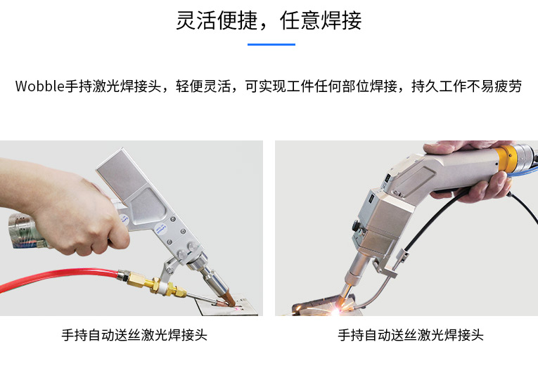 通發(fā)激光一體式手持式激光焊接機(jī),用手持式焊接槍替代以前固定光路,手拿焊接,靈活方便,焊接距離更長(zhǎng),克服工作臺(tái)空間的局限性,工件尺寸不統(tǒng)一時(shí)無(wú)法自動(dòng)焊接的情況下使用。主要針對(duì)大型工件、固定位置如內(nèi)直角、外直角、平面焊縫焊接、焊接時(shí)熱影響區(qū)域小,變形小、而且焊接深度大,焊接牢固。是遠(yuǎn)距離焊接大工件的較為靈活的全新的焊接工藝。